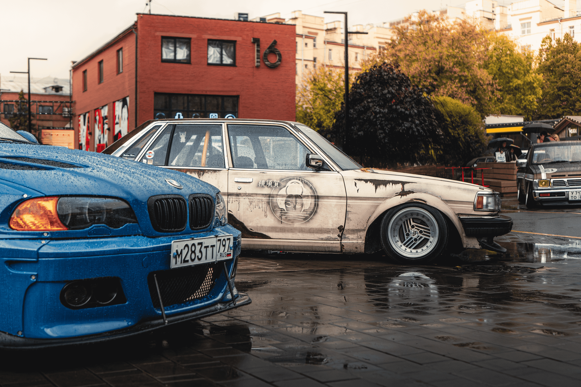 На детальных кадрах дождь, безусловно, добавляет красоты — капли на кузовах машин смотрятся эффектно, но на общих планах он скорее мешает и делает картинку мутной и грязной. Из-за этого я забраковал немало фотографий, так что здесь вы не увидите всех машин, что были на мероприятии.