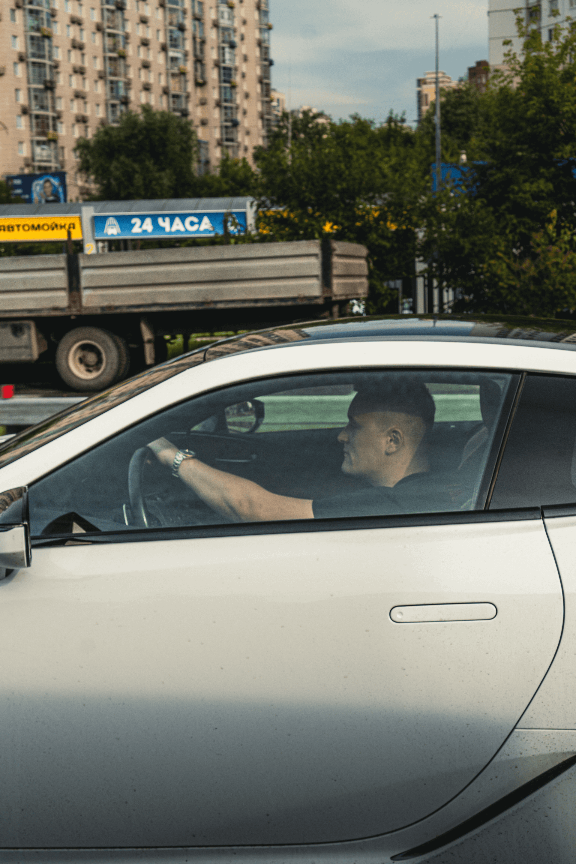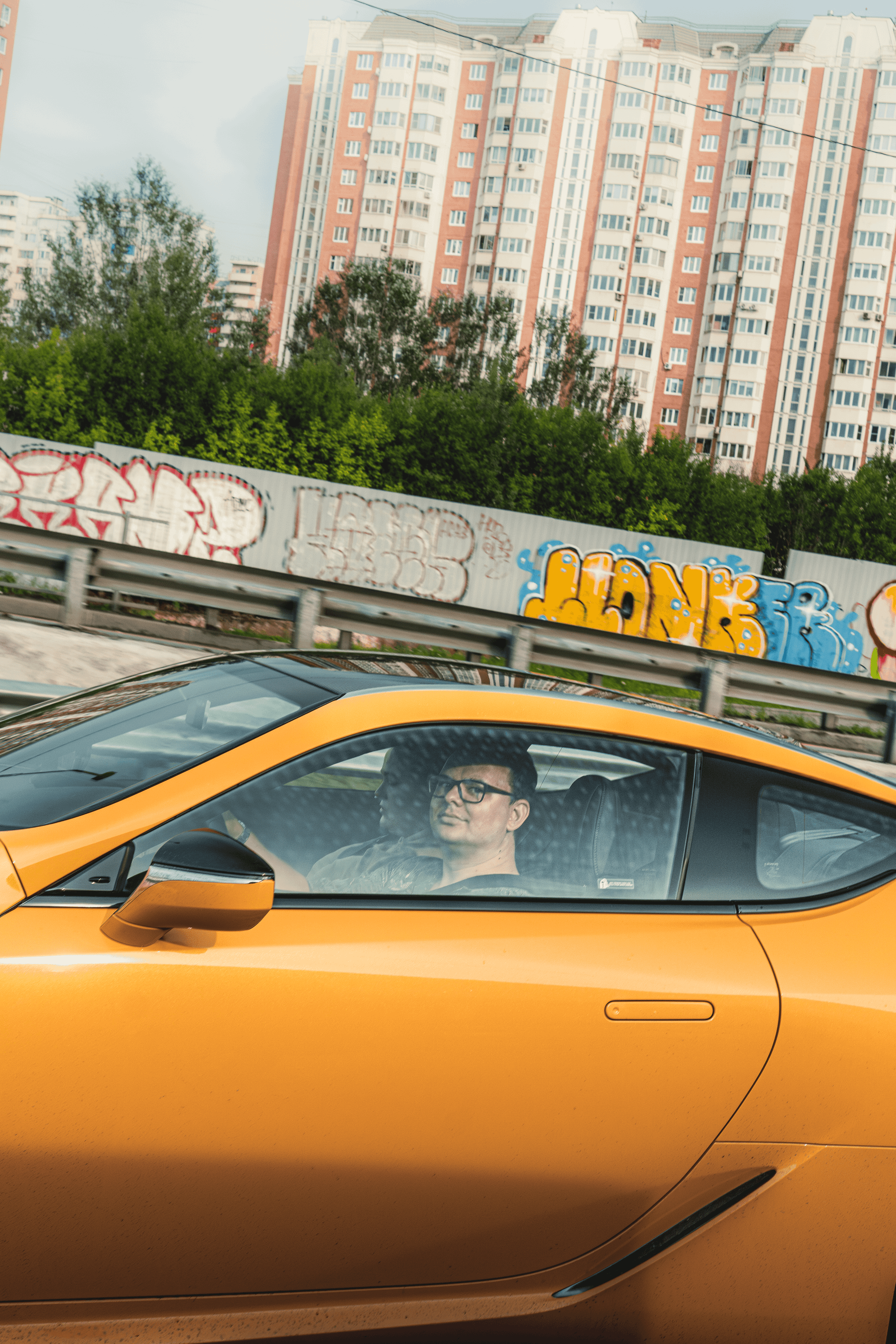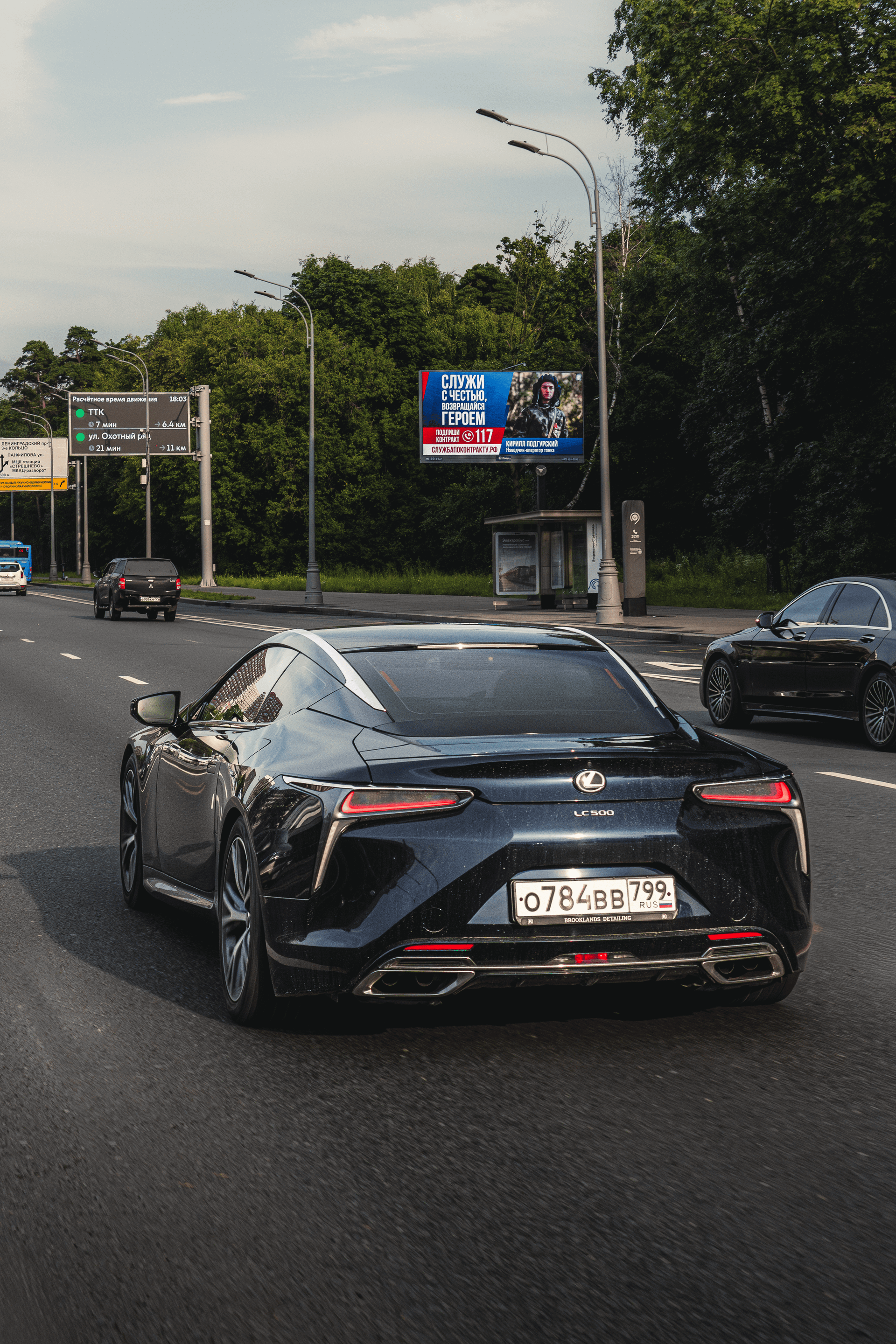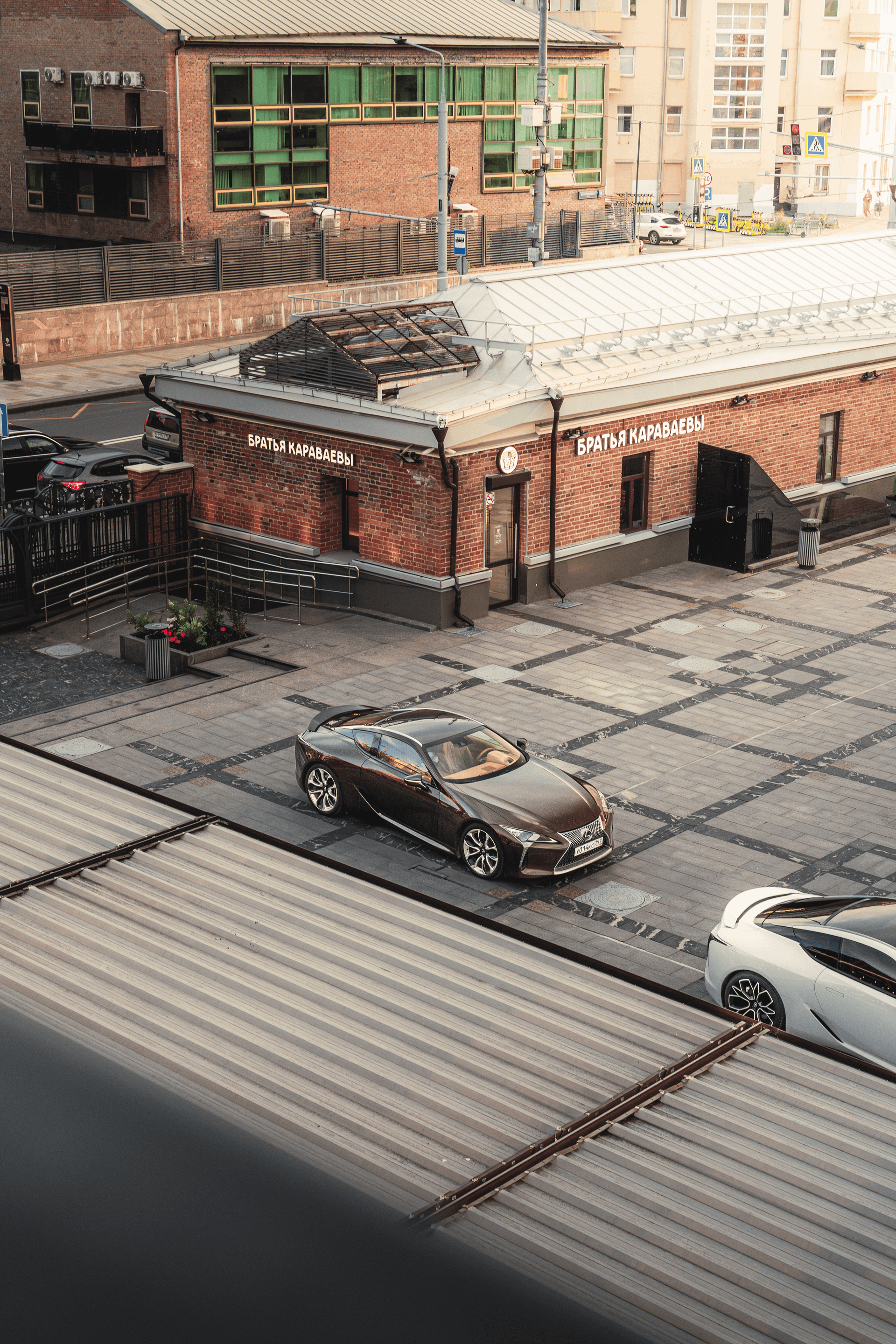Чтобы запечатлеть картину восьми LC500, едущих по Москве, я заранее пересел в Mercedes G63 одного из участников клуба — его Lexus, к сожалению, не успели подготовить к встрече. Благодаря большим окнам G-класса мне удалось сделать фото с разных ракурсов, почти не высовываясь наружу. Во время поездки колонна несколько раз случайно разделялась, но благодаря небольшой загруженности улиц и высокой скорости движения нам удавалось быстро собираться обратно.
