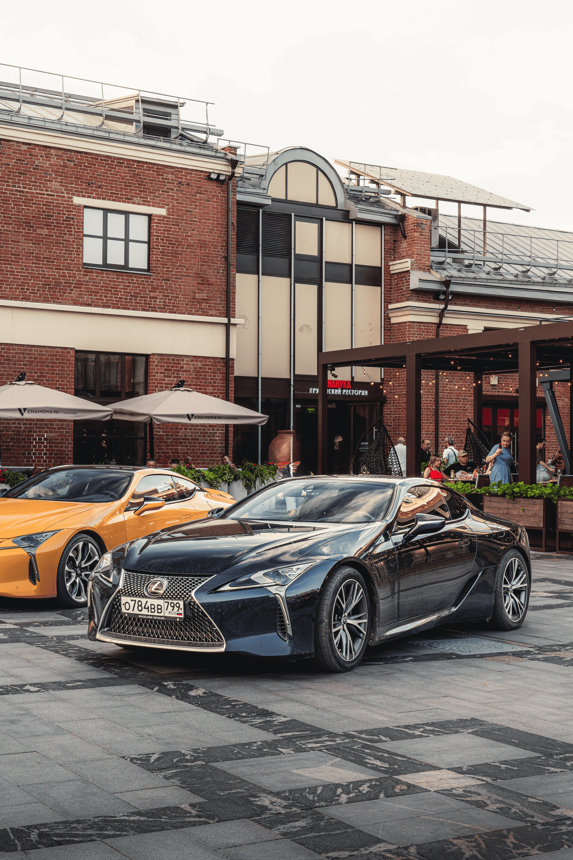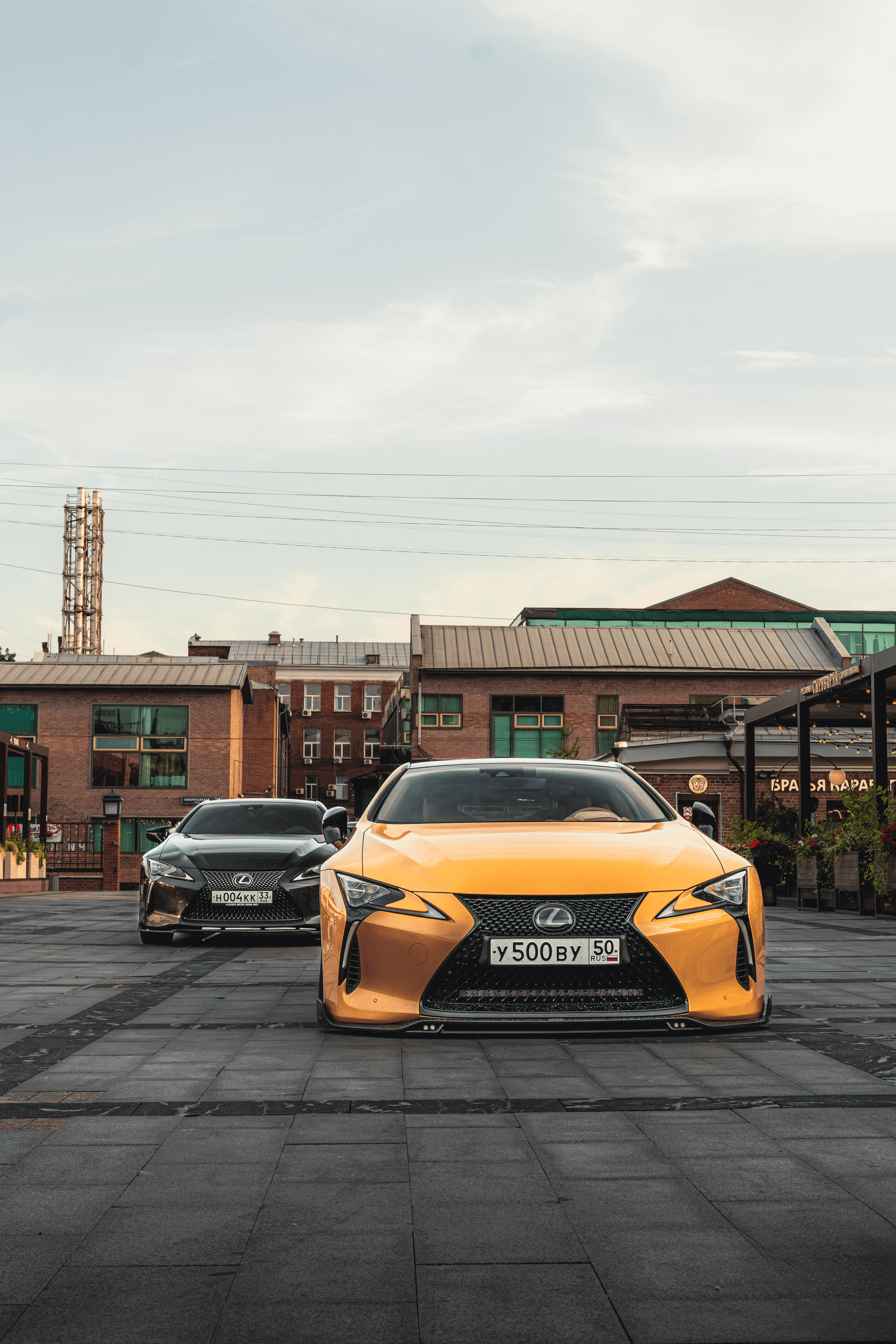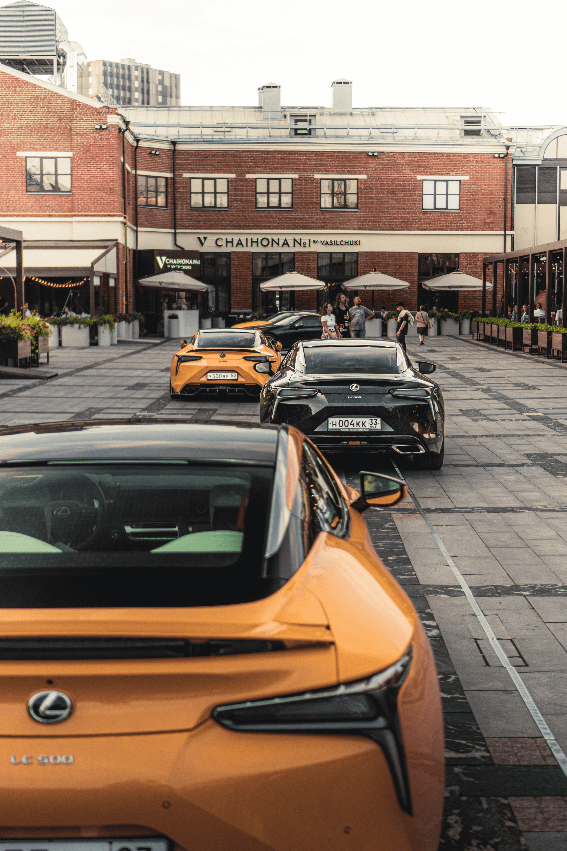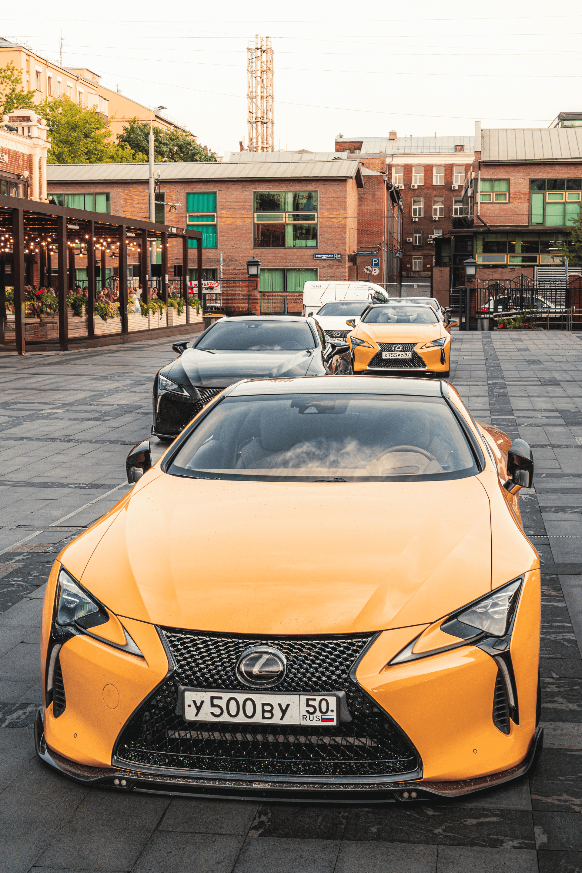 Именно здесь у меня получилось максимально красиво сфотографировать экземпляр, который мне понравился больше всех — жёлтый LC500 с обвесом от фирмы TOM'S, нештатным выхлопом, а также красивейшей стенс-посадкой. На фоне остальных автомобилей, оставшихся в заводском исполнении (кроме черного Lexus из Владимира), этот, на мой взгляд, выглядит максимально необычно.