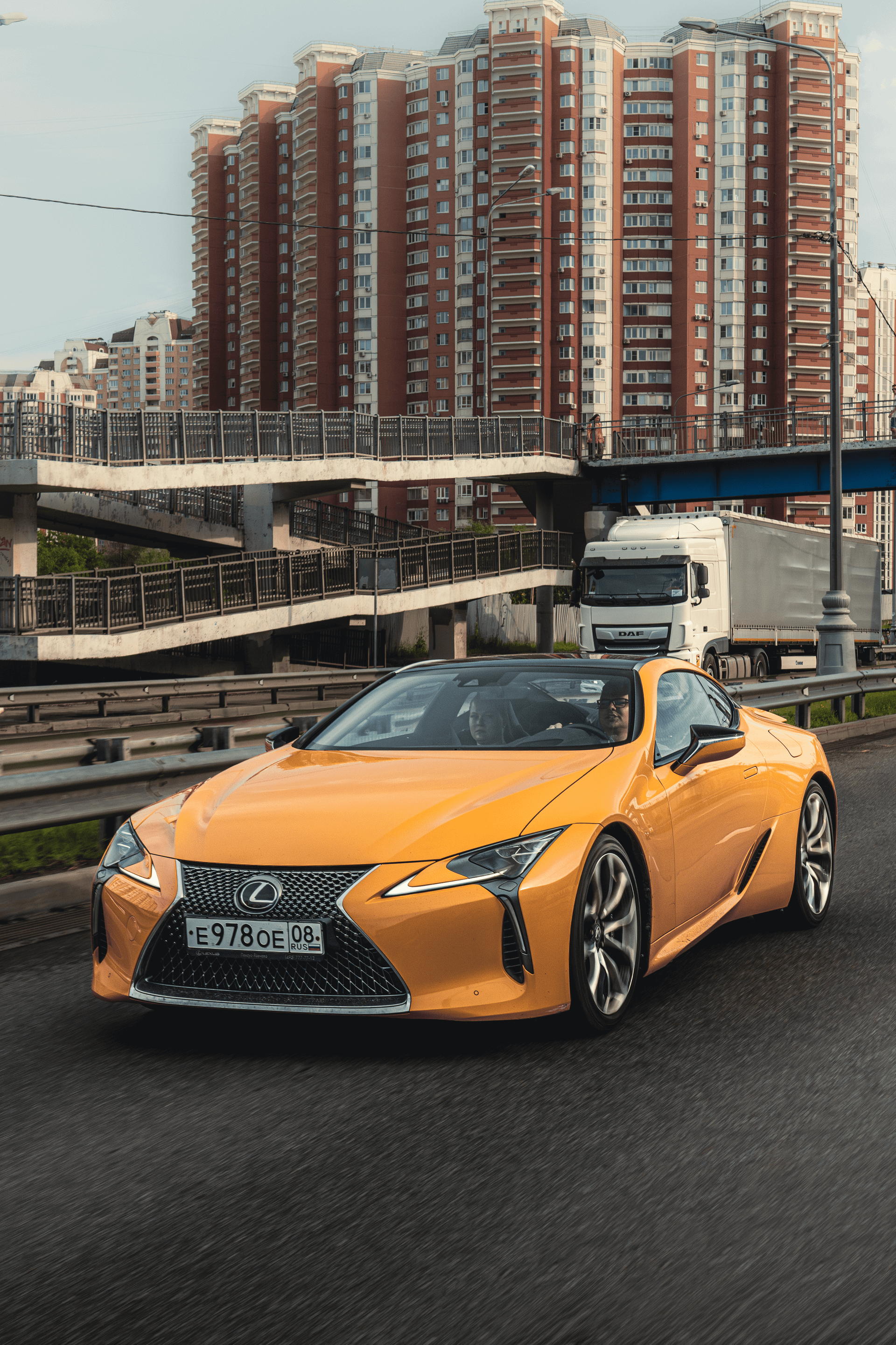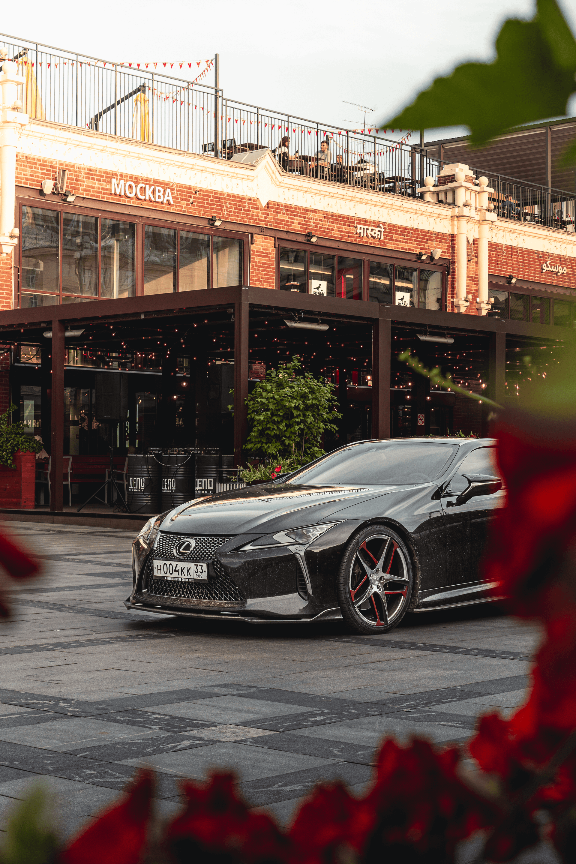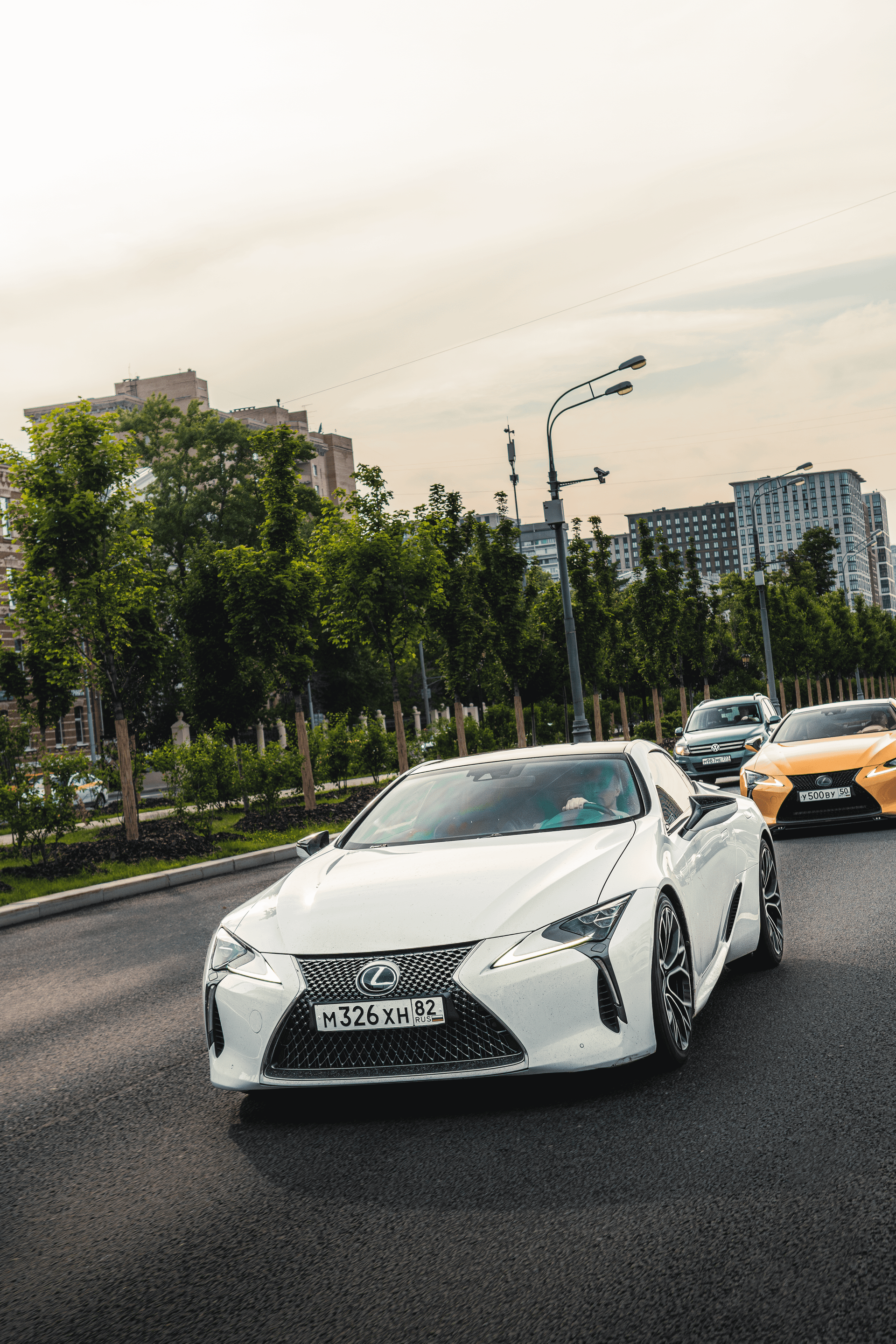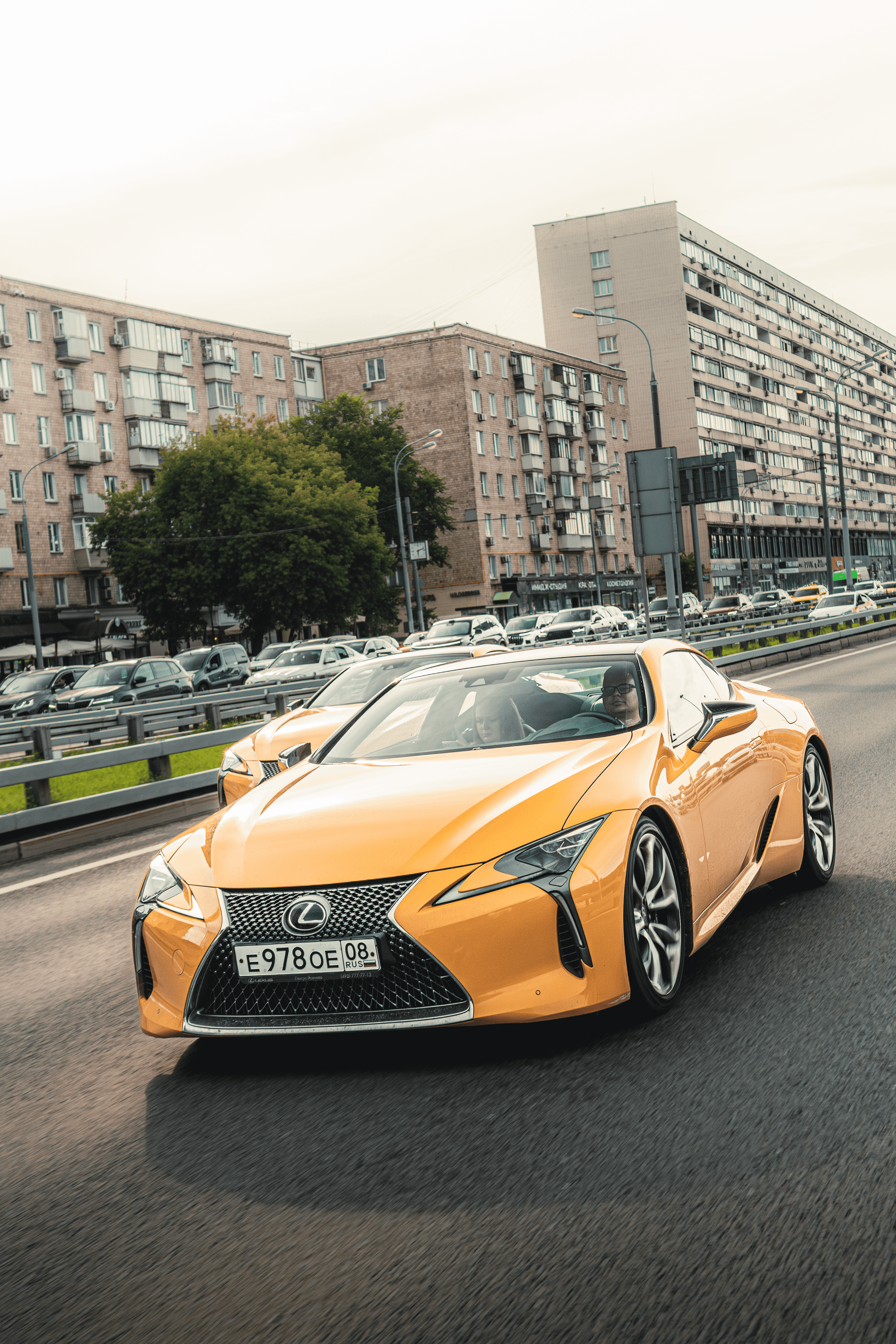 Именно здесь у меня получилось максимально красиво сфотографировать экземпляр, который мне понравился больше всех — жёлтый LC500 с обвесом от фирмы TOM'S, нештатным выхлопом, а также красивейшей стенс-посадкой. На фоне остальных автомобилей, оставшихся в заводском исполнении (кроме черного Lexus из Владимира), этот, на мой взгляд, выглядит максимально необычно.