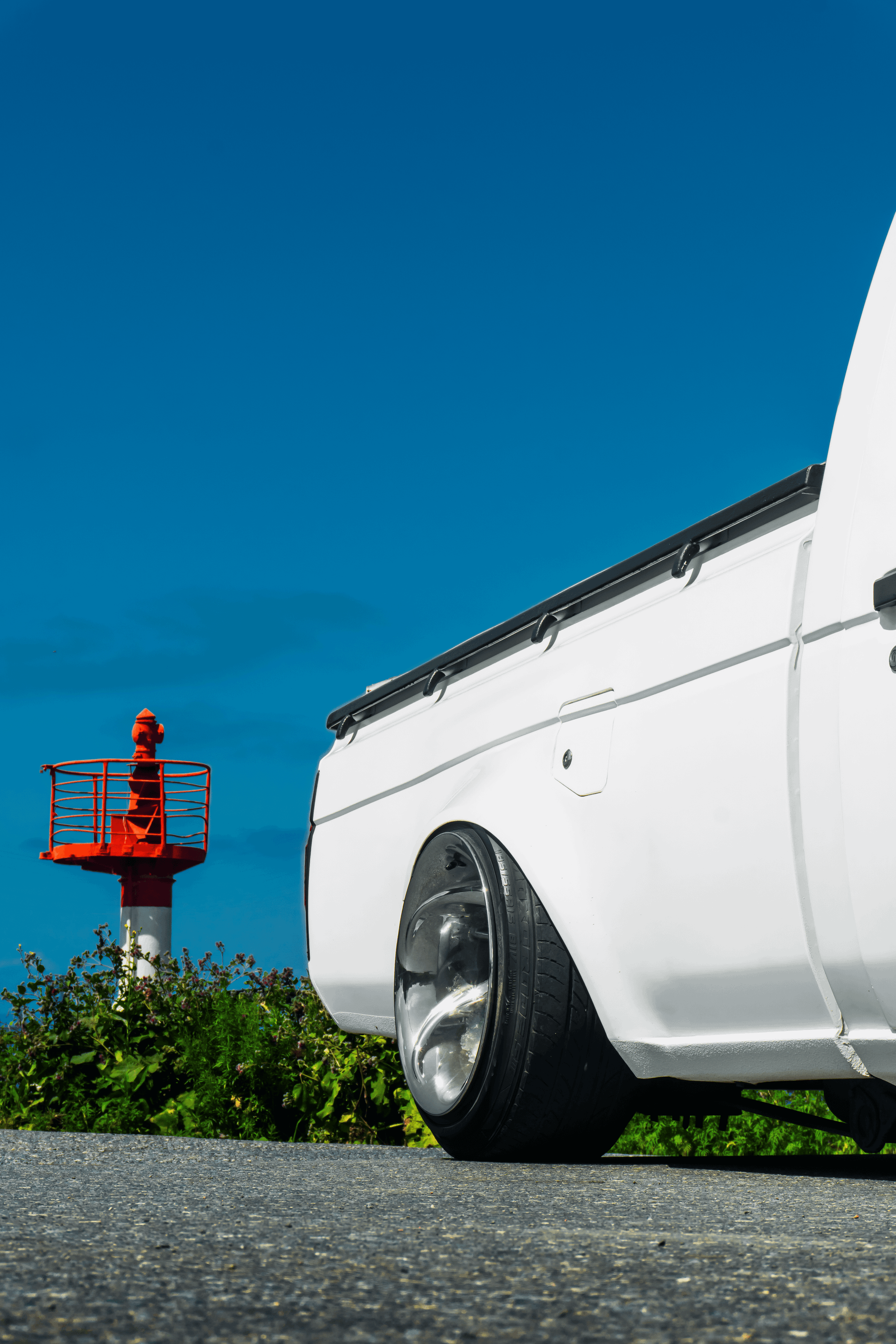 Фотосессия прошла в один из самых жарких дней моего пребывания во Владивостоке, благодаря чему пальма, случайно оказавшаяся в багажнике, выглядит весьма аутентично, и вместе с большим баллоном пневмоподвески, создает красивую композицию в багажнике.
