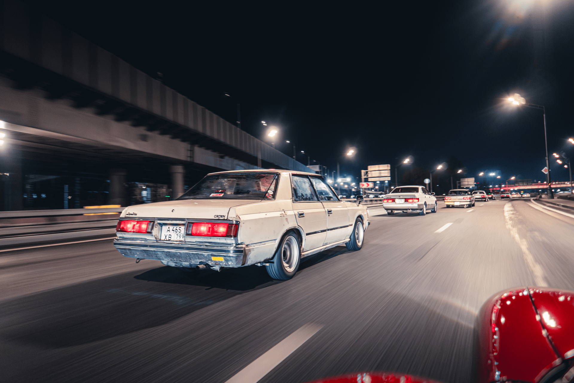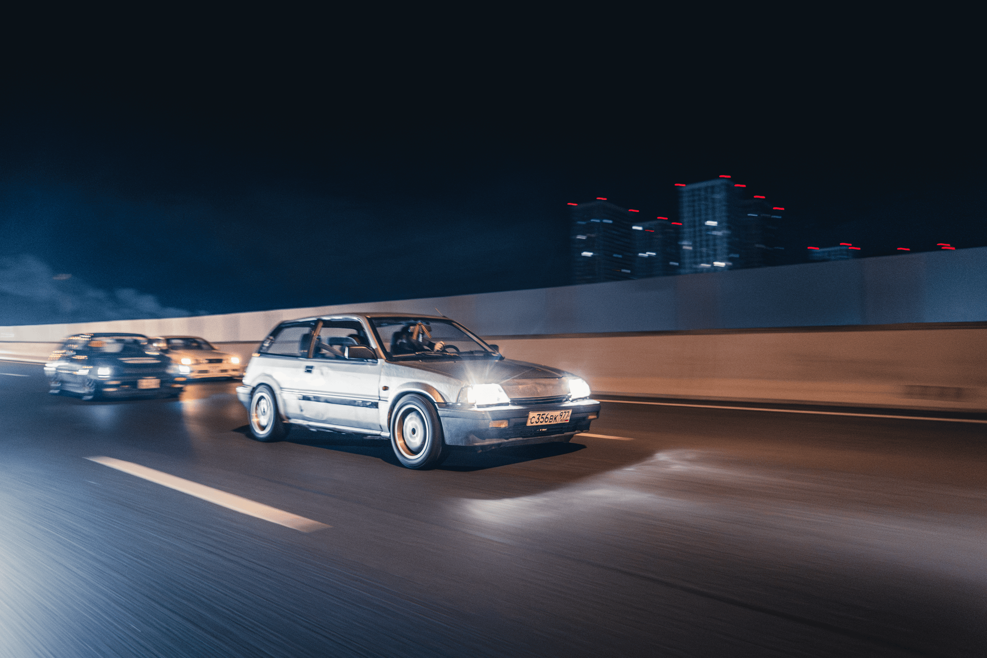 Несмотря на то, что совсем недавно я вернулся из поездки в Хабаровск, даже в Москве я продолжаю находить мероприятия с японскими автомобилями. На этот раз — очередной ночной круиз от сообщества Rotten Rice, преимущественно состоящий из старых японских автомобилей.