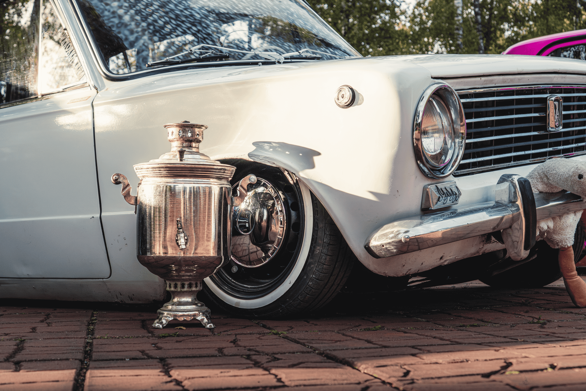 А окружение было действительно интересное: во-первых, придерживаясь названия мероприятия, организаторы расставили по территории стойки с работающими самоварами, а во-вторых, и сами участники делали небольшие экспозиции у своих автомобилей.