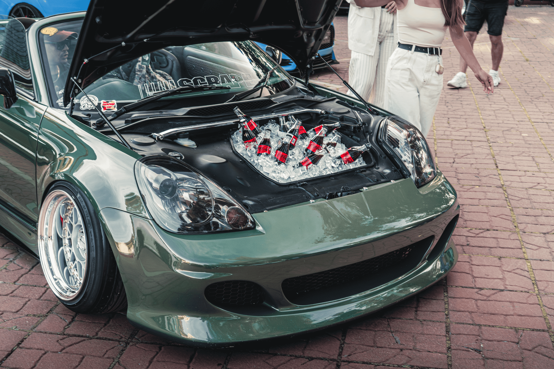 Интересный перфоманс представил владелец данной Toyota MR2, превратив ее багажник в холодильник с кока-колой для всех желающих. В такой жаркий день это был действительно прекрасный поступок)