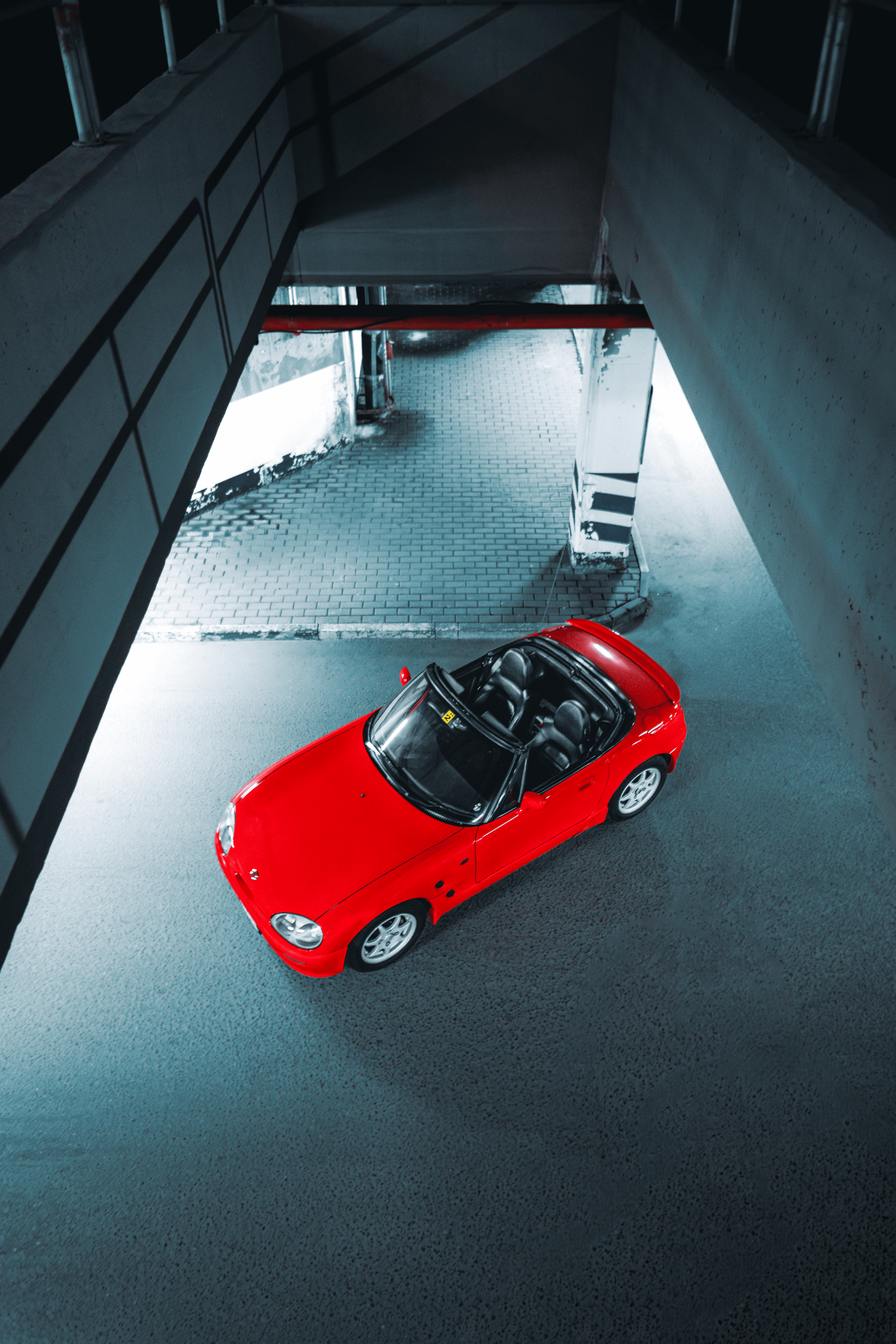 Сбор участников Rotten Rice, о котором я писал в прошлом посте, проходил на парковке ТЦ Мега, и одной из первых машин туда приехала как раз эта малютка. Именно тогда яркий красный цвет Ашана и такой же цвет Cappuccino сложились у меня в голове в цельную картинку. Недолго думая, я быстро познакомился с ее владельцем Игорем, и предложил провести небольшую фотосессию. Хотя кадров вышло мало, но они получились именно такими, какими я их представлял.